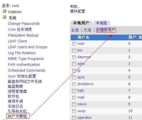 4、接下來開始建立用戶: a、 首先建立用戶,點(diǎn)擊左側(cè)的“系統(tǒng)”—“用戶與群組”,然后點(diǎn)擊右側(cè)的“創(chuàng)建新用戶”如圖: