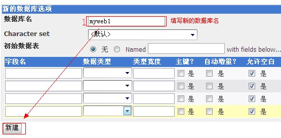 b、 填寫數(shù)據(jù)庫名,選擇編碼格式,一般選擇“默認(rèn)”或者是指定其中一種編碼,如圖: